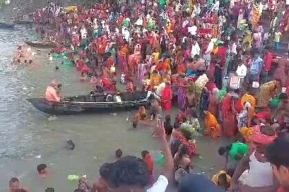 कार्तिक पुर्णिमा के अवसर पर झमटिया धाम गंगा घाट पर गंगा स्नान के लिए उमड़ी श्रद्धालुओ की भीड़
