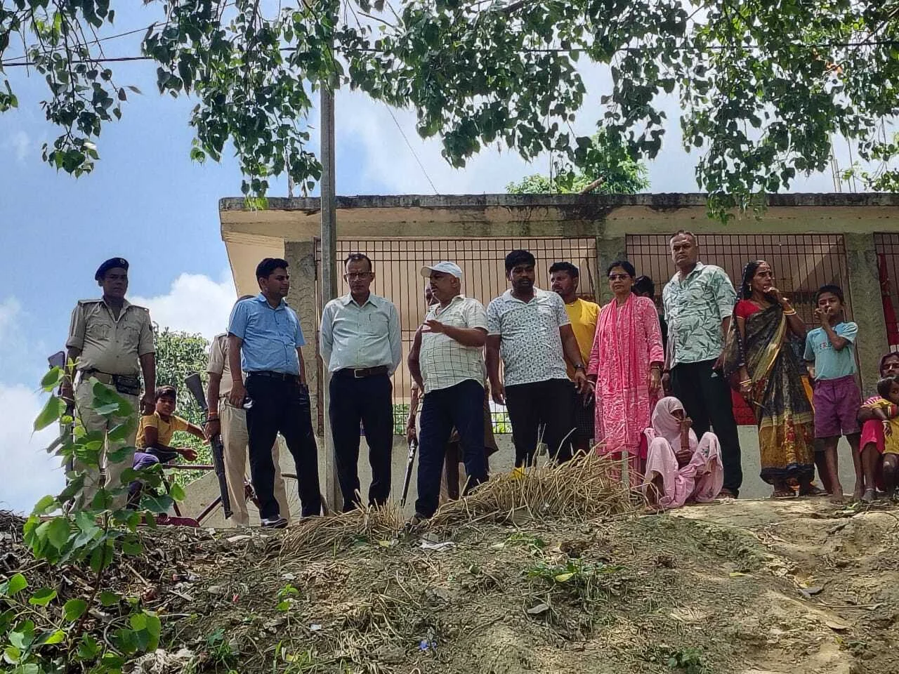 बेगूसराय जिले के वीरपुर फोटो पकड़ी हनुमान चौक के बलान नदी स्थित बांध किनारे प्रस्तावित छठ घाट पर सिढ़ी निर्माण से संबंधित कार्यों में ग्रामीणों के द्वारा किए जा रहे अबरूध को सोमवार को बीडीओ पंकज कुमार शक्ति धर, सीओ भाई विरेंद्र